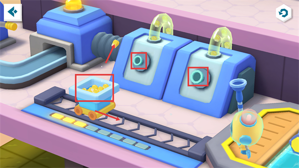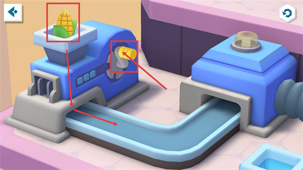 2、将【玉米】放入加工机器,启动机器后会产出对应食材,加工后的食材会通过传送带输送至后续制作环节。
