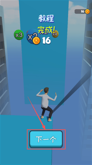 4、领取倍数:出现“教程完成X3×416下一”,点击“下一”,立刻收下倍数奖励并继续。