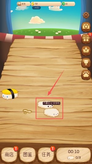 2、精准合并寿司:观察寿司分布,点按将相同品类寿司合并,逐步升级获得更高等级的寿司。