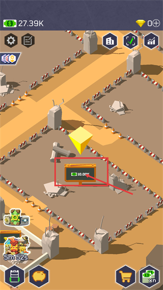 1、找到场景中标识【10.00K】-的区域,这是新建建筑的资源标识,为后续解锁新店铺做前置准备。