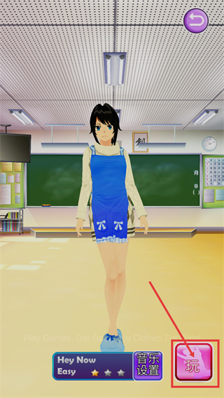 1、看到界面内的【Hey-Now-Easy】标识,可先通过音乐-设置调整音效,再点击被标注的【玩】按钮,以此进入对应的游戏环节。