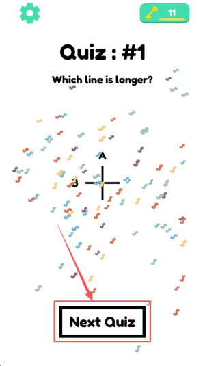 2、阅读问题:界面出现“Quiz:#1 Which line is longer?”,再次确认题目。