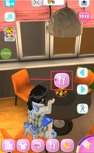 2、找到餐桌区域的【餐具】标识,点击对应交互点可触发用餐相关操作,完成当前场景的互动任务。