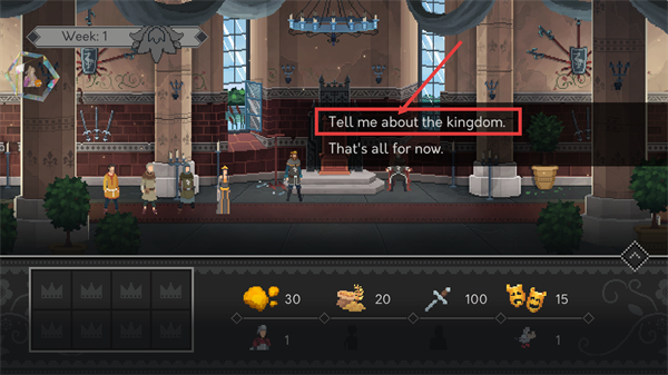 2、选择【Tell-me-about-the-kingdom.】选项,可向NPC了解王国相关信息,助力后续王国管理类操作的开展。