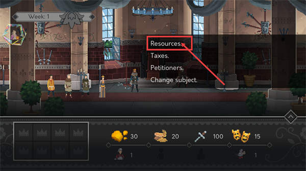3、在对话选项中选择【Resources.】,可查看王国资源相关的详细说明,明确资源管理的核心方向。
