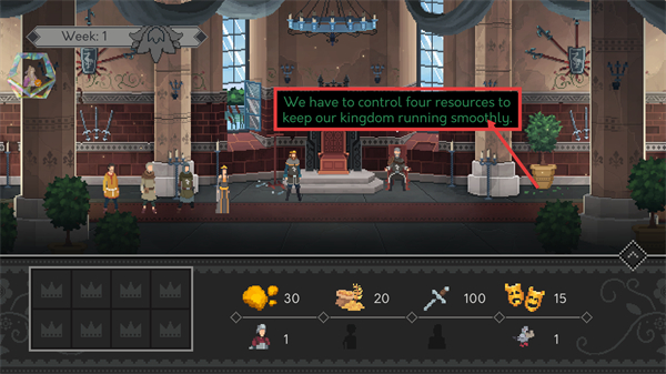 4、根据提示【We-have-to-control-four-resources-to-keep-our-kingdom-running-smoothly.】,后续需重点管控四类资源以维持王国运转。