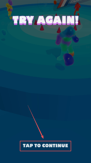 4、再次挑战:若出现“TRY AGAIN!”,点击“TAP TO CONTINUE”立即重开一局。