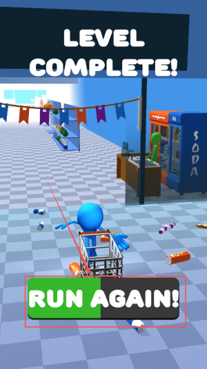 4、完成挑战:当界面显示“LEVEL COMPLETE!”时,点击“RUN AGAIN!”继续下一关。
