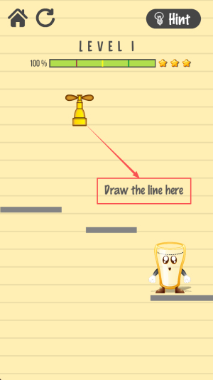 3、开始画线:在关卡界面查看提示虚线,用手指画线引导水流进杯子。