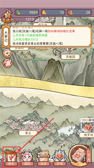 1、关注【大事记】,可查看如【范小依[灰狐·1尾]】食用灵果、狐妖突破等信息,同时可通过【综合】入口查看核心数据。