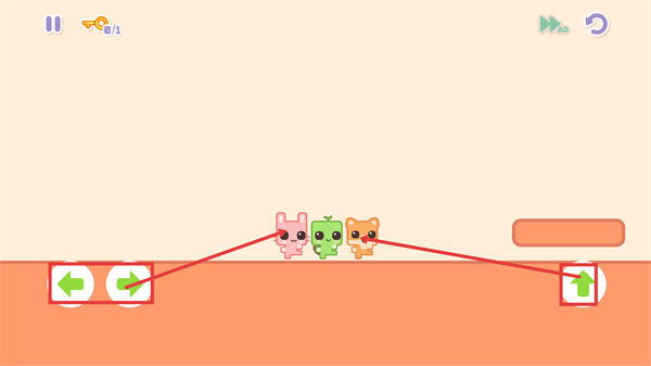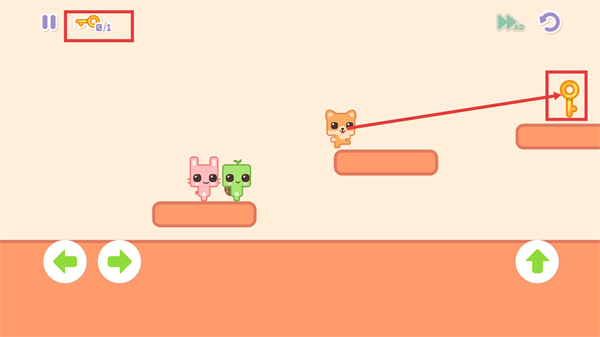 2、游玩内通过左侧的左右方向键控制角色移动,右侧的向上键可让角色跳跃,以此调整角色位置推进关卡。