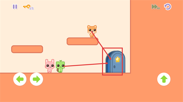 4、收集完钥匙后,操控角色移动到带有星星标识的【门】的位置,即可完成关卡的通关条件,进入下一阶段。