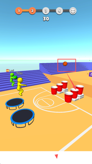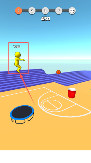 1、聚焦蹦床弹跳+投篮闯关:核心围绕“操控小人弹跳、找准投篮位置、把控投掷力度、攻克多元关卡”展开,玩法辨识度鲜明。