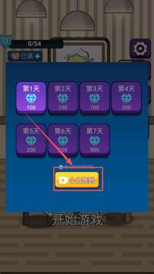 2、选择关卡:在签到界面点击“第1天”,领取奖励后进入“关卡1”。