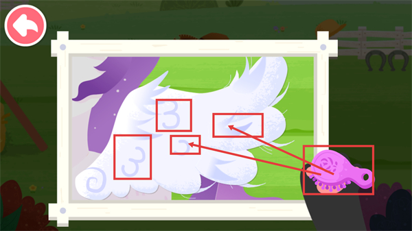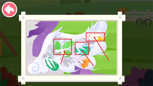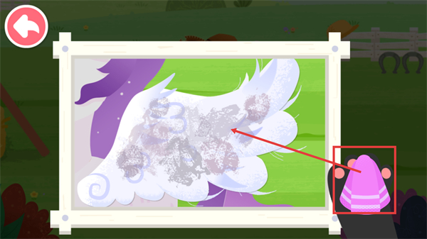 2、清洁环节里,点击小马翅膀上的【污渍区域】,可逐步清理对应位置的脏污。