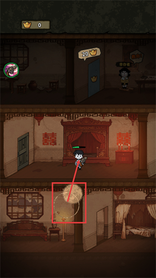 1、在场景中收集资源(如蜡烛区域),同时可通过特定门获取【20-金币】,还能救助【幸存者】推进流程。