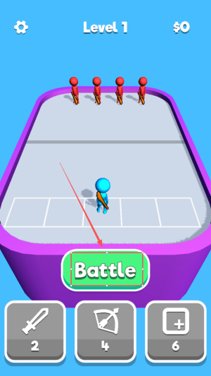 1、进入游戏:首先打开游戏主界面,点击“Battle”进入金币合并战场。