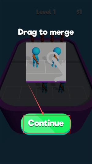 3、开始合并:在战场界面按住“Drag to merge”,拖动相同金币合成更高面值。