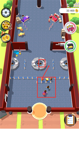 1、在场景中引导排队客户前往服务台,利用现有设施接待访客,积累资源以解锁更多功能。