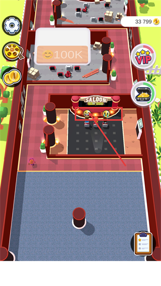 4、解锁【SALOON】区域后,通过接待客户积累【100K】笑脸资源,推进场景扩建与功能升级。