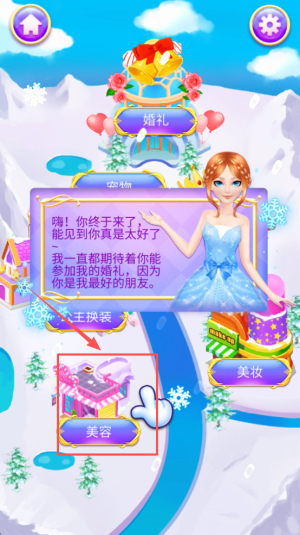 1、熟悉核心操控:掌握造型搭配与场景布置的基础操作,明确“打造完美冰雪婚礼”的核心目标。