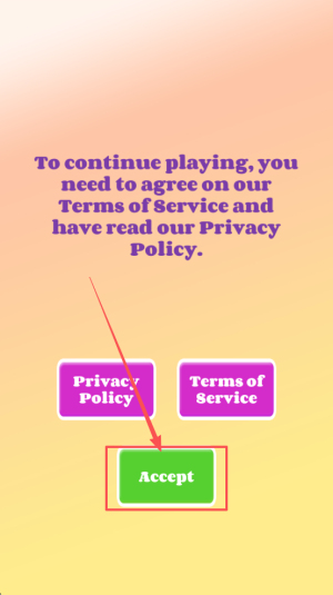 1、进入游戏:首先打开游戏主界面,点击“Accept”同意隐私政策进入主菜单。
