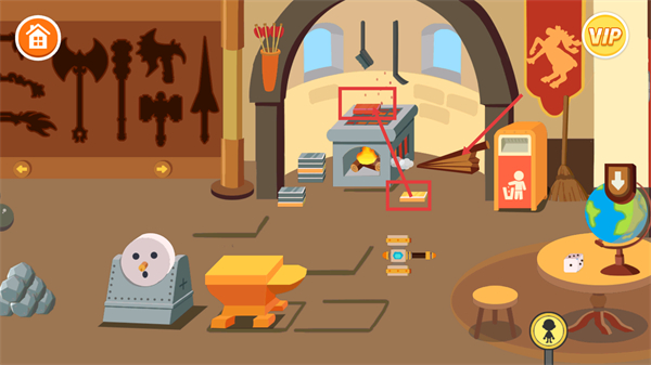 2、将【火炉】上的材料移动到地面的【方块】处,完成该步骤的物品交互操作以解锁后续流程。
