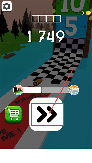 4、关卡完成后点击【>>】按钮,可进入下一个关卡,同时保留当前累积的【1749】数值,继续推进游戏进程。