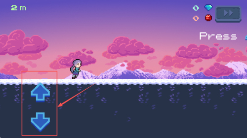2、控制角色:使用屏幕上的上下箭头控制角色移动。