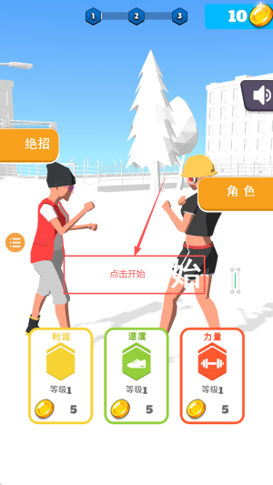 4、完成关卡挑战解锁更多格斗招式与角色,打磨格斗技巧优化连招组合,逐步成长为顶尖格斗胜利者。