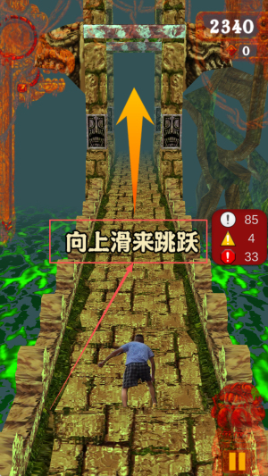 4、跳跃障碍:向上滑动屏幕,让角色跳跃过障碍。
