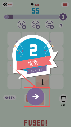 3、再次融合:继续添加素材,出现“99% 250 FUSED!”再次完成融合。