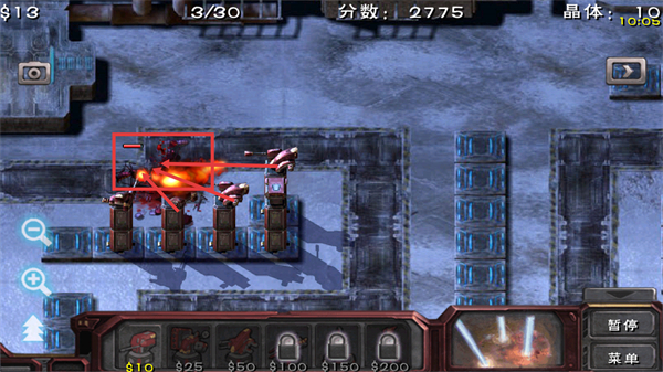 3、战斗中让炮塔集火敌方单位,通过攻击削减其血量,同时可根据战况补充炮塔,提升火力覆盖效率。