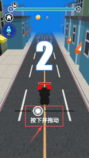 3、拖动操作:按提示“按下并拖动”控制角色移动并完成关卡。