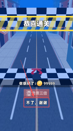 4、领取奖励:通关后点击“99999”下方“免费三倍”,再点“谢谢”收下奖励。