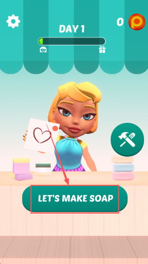 2、开启教程:在“DAY1”界面点击“LET'S MAKESOAP”开始第一天的制皂任务。