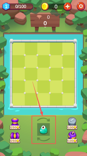 3、精准规划布局:在5*5格子内合理摆放怪兽,放置前旋转调整形态,精准匹配三个同色怪兽完成合并。