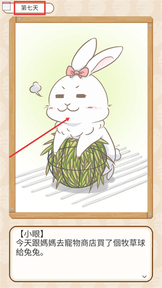2、进度推进到对应阶段会解锁剧情事件,如第七天解锁给【兔兔】购买牧草球的剧情内容。