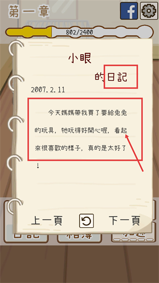 4、点击【日記】按钮可查看剧情日记,记录了给【兔兔】买玩具等互动相关的故事内容。
