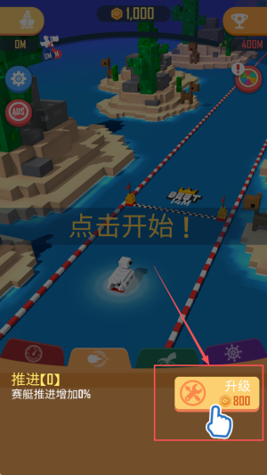 3、升级能力:在比赛间隙,点击“升级”按钮,使用金币提升船只性能。