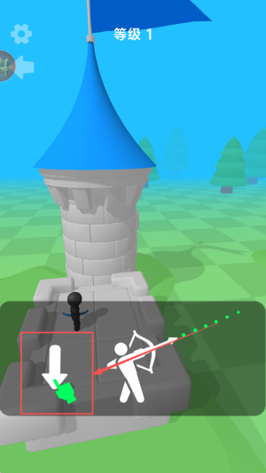 1、扮演小黑人战士为国王而战,在高塔上放置小兵部署防御,构建坚固防线抵御敌人进攻,守护城堡安全。