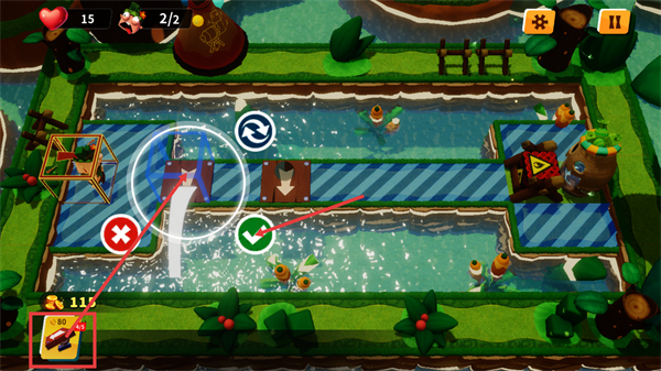2、在关卡界面中,消耗【80-道具】布置方向板,确认布局后点击【绿色对勾】按钮,推进当前关卡的流程进度。