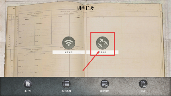 1、在训练任务界面,选择【攻击机群】功能,搭配【航空侦察】可提前规划空中作战的基础战术。