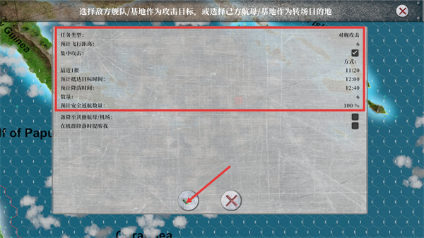 4、在攻击任务配置界面,确认【对舰攻击】的相关参数后,点击确认按钮执行机群的攻击或转场任务。