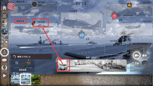 3、执行【侦察任务-10位置-180°】时,调用机库内的【TBD】单位,部署后推进空中侦察流程。