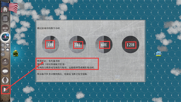 4、使用时间快进功能时,可选【1H】【3H】等时长,快进会在发生战斗等情况时自动停止。