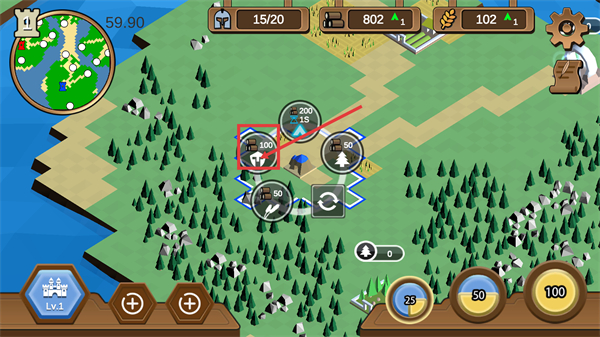 1、可选择消耗【100】资源获取对应单位,同时留意界面中【200】【50】等资源标识,按需选择获取项来积累资源与单位。