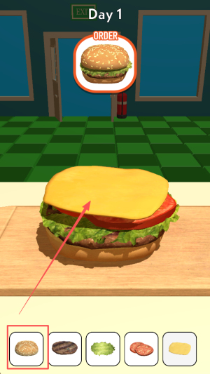 2、跟随提示学习:按照游戏提示逐步完成基础汉堡制作,积累食材搭配与制作流程的相关经验。