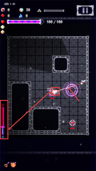 4、竖屏2D画风适配战斗视野,清晰呈现地形、敌人与道具分布,配合高速移动与射击的流畅反馈,打造紧凑爽快的战斗体验。