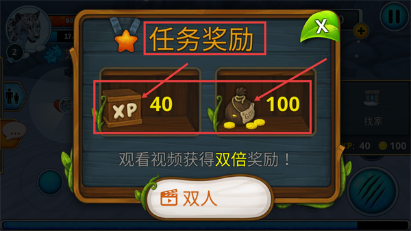 4、任务完成后领取【任务奖励】,可获得【XP-40】与【100】金币,也可观看视频获取双倍奖励。
